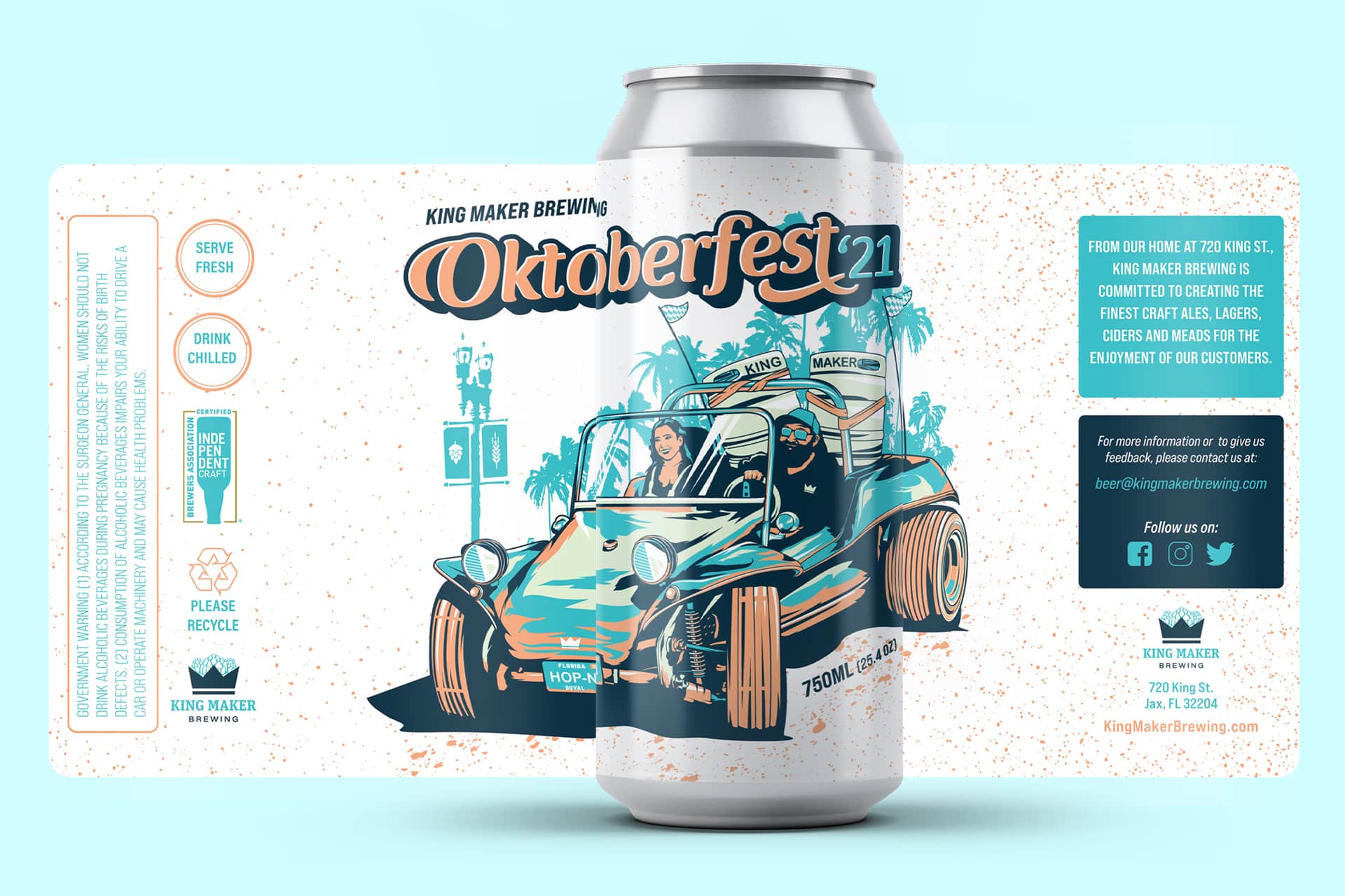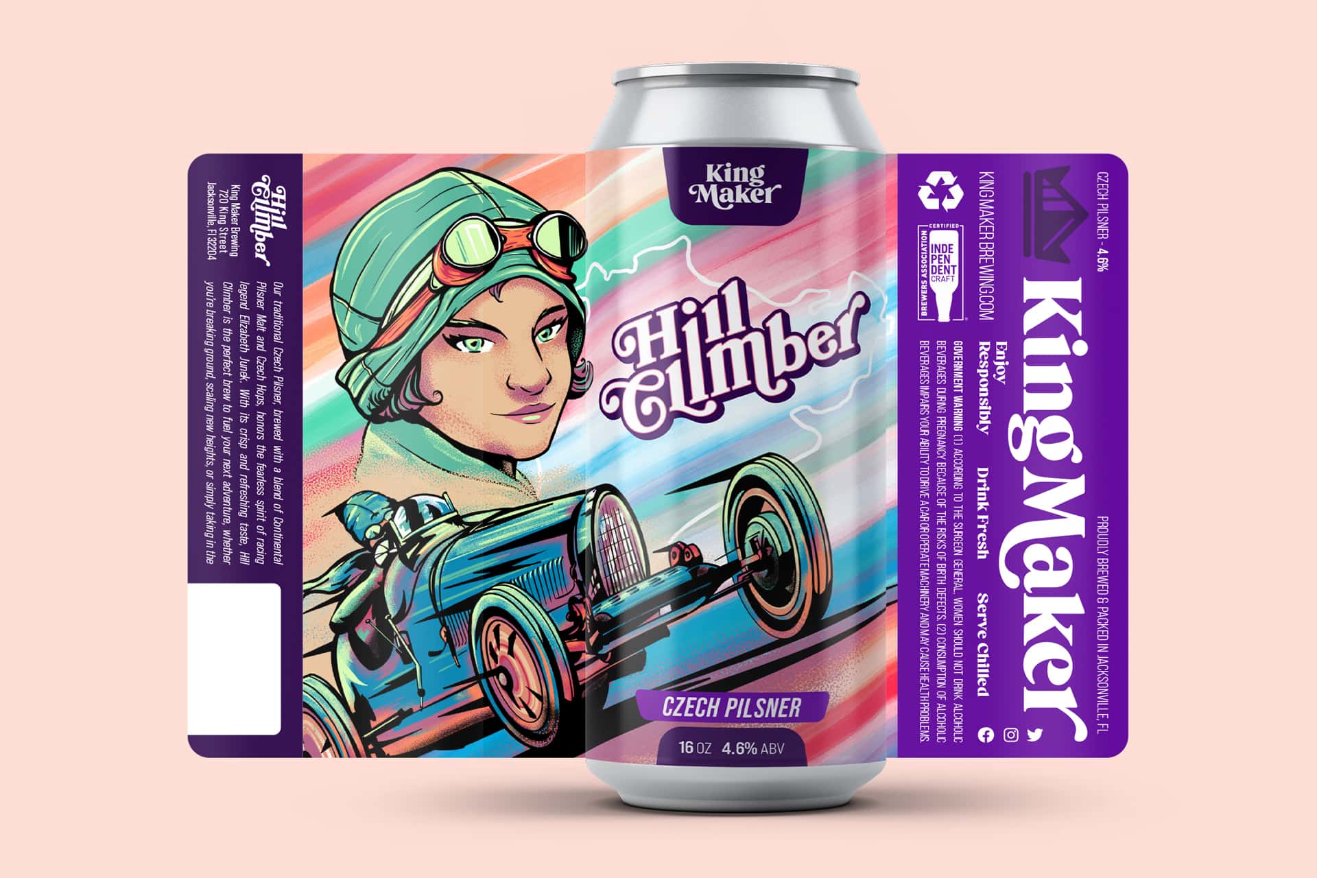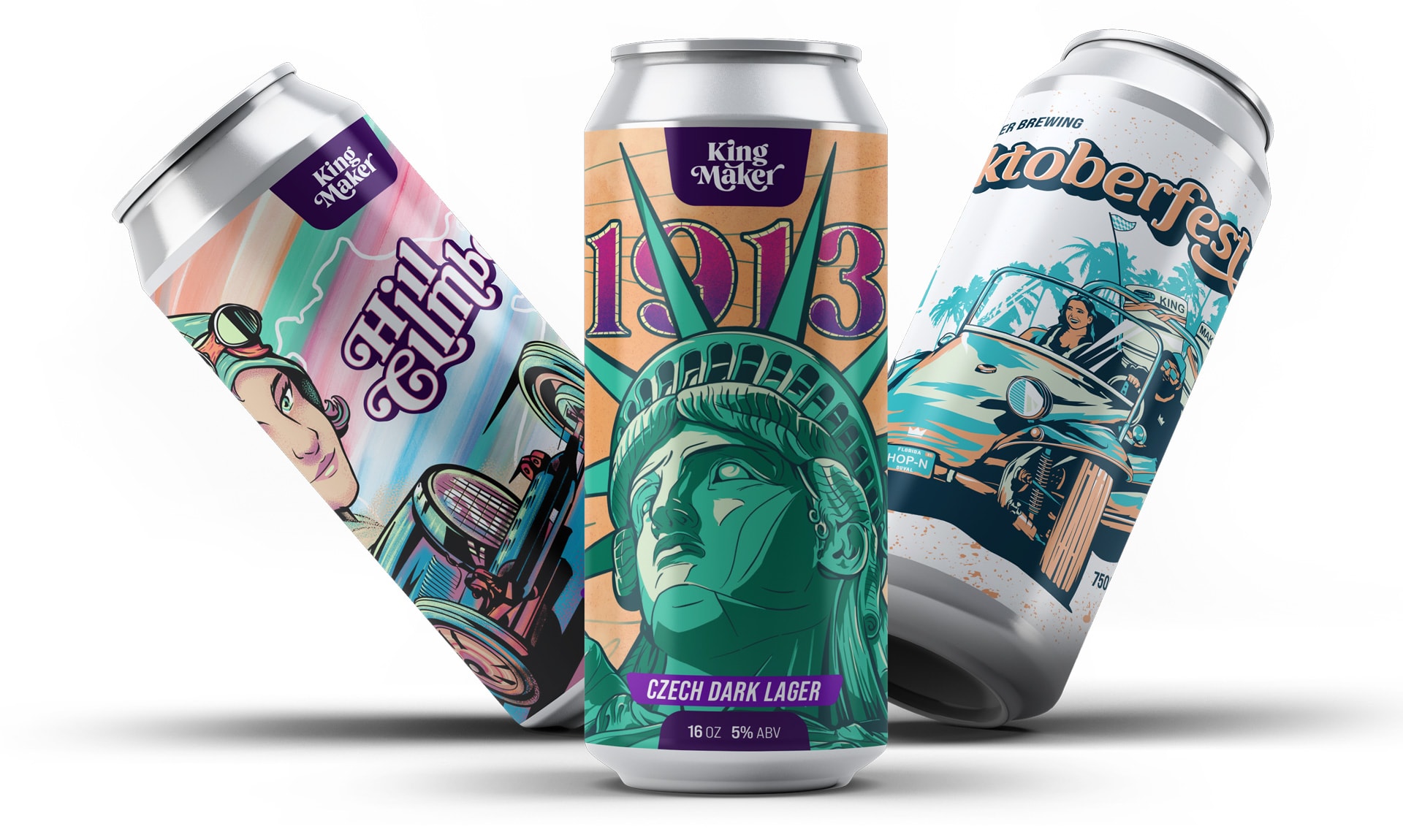 Noble Crow has had the pleasure of partnering with King Maker Brewing on a comprehensive rebrand, illustrations, can labels, event posters, and merchandise. All along the way, the goal has been to honor and elevate King Maker’s unique and spirited identity. Each design element tells a part of King Maker’s story, mirroring their commitment to quality and their fresh and vibrant spirit.
